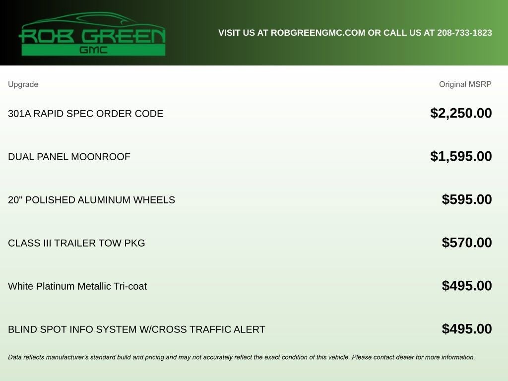 Come to www.RobGreenBuickGMC.com Call us at (208) 944-4073 For help with any of our departments.