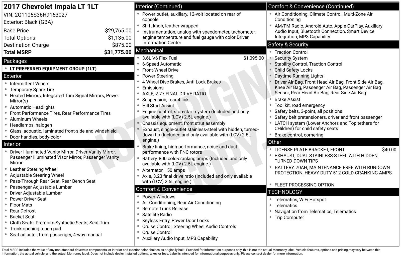 2017 Chevrolet Impala LT 1LT Black FWD 3.6L V6 DI DOHC 6-Speed Automatic Electronic with Overdrive