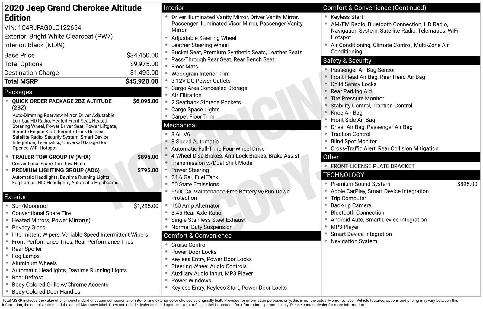 2020 Jeep Grand Cherokee Altitude Bright White Clearcoat 4WD 3.6L V6 24V VVT 8-Speed Automatic