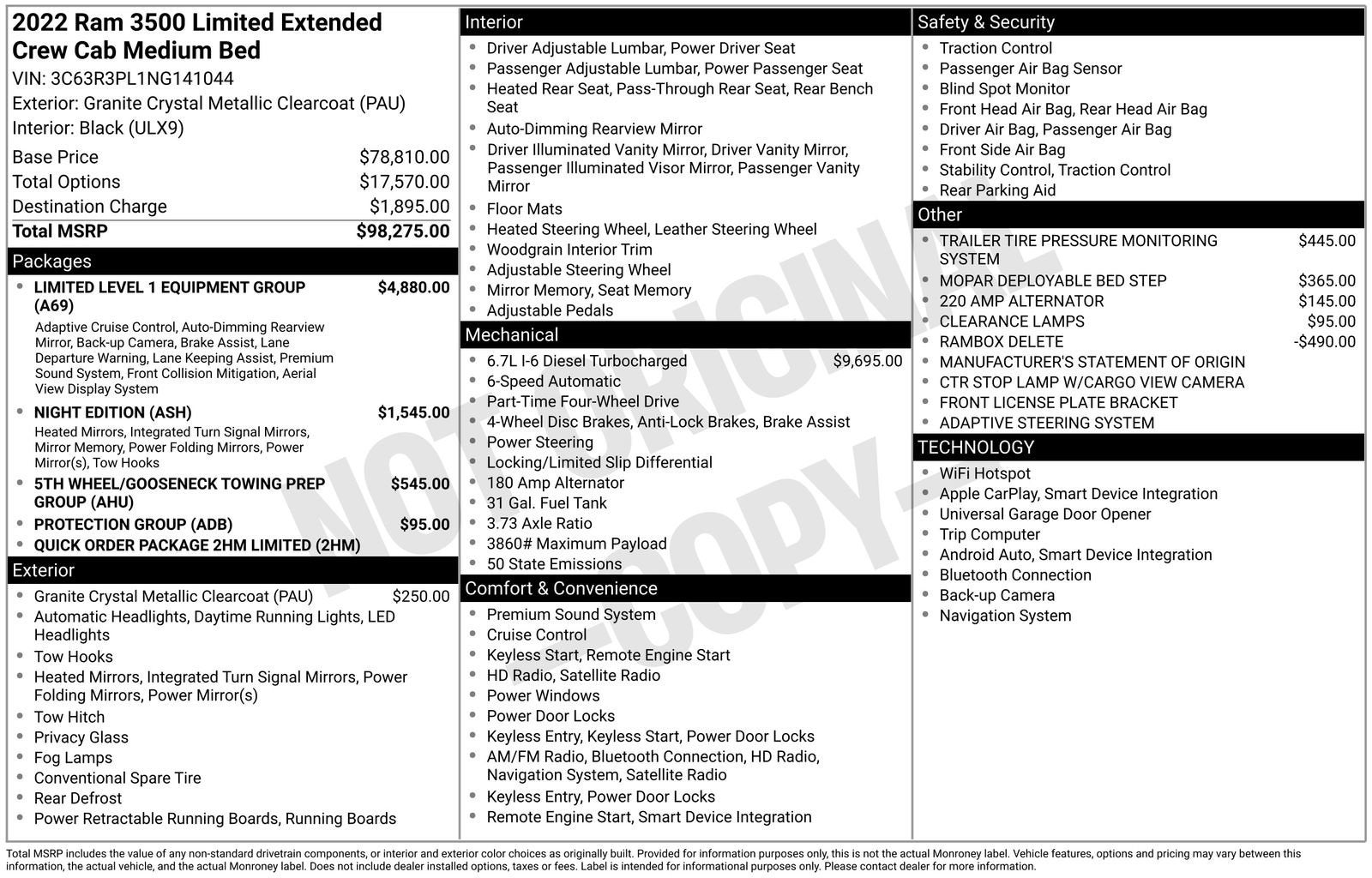 With its exceptional capabilities, advanced technology, and uncompromising attention to detail, this 2022 Ram 3500 Limited is the ultimate choice for discerning truck enthusiasts. Experience the difference for yourself and schedule a test drive today.