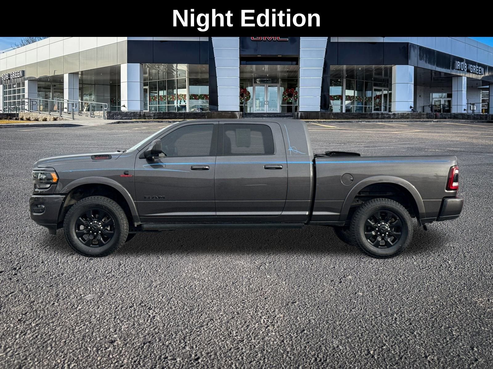 The Night Edition package adds a touch of bold sophistication, with a range of blacked-out exterior accents that create a striking, commanding presence on the road. From the black headlamp bezels and grille to the power-folding mirrors and tailgate badge, this Ram 3500 exudes an undeniable sense of rugged elegance.