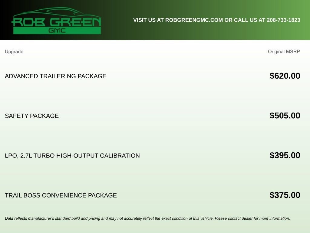 Come to www.RobGreenBuickGMC.com Call us at (208) 944-4073 For help with any of our departments.