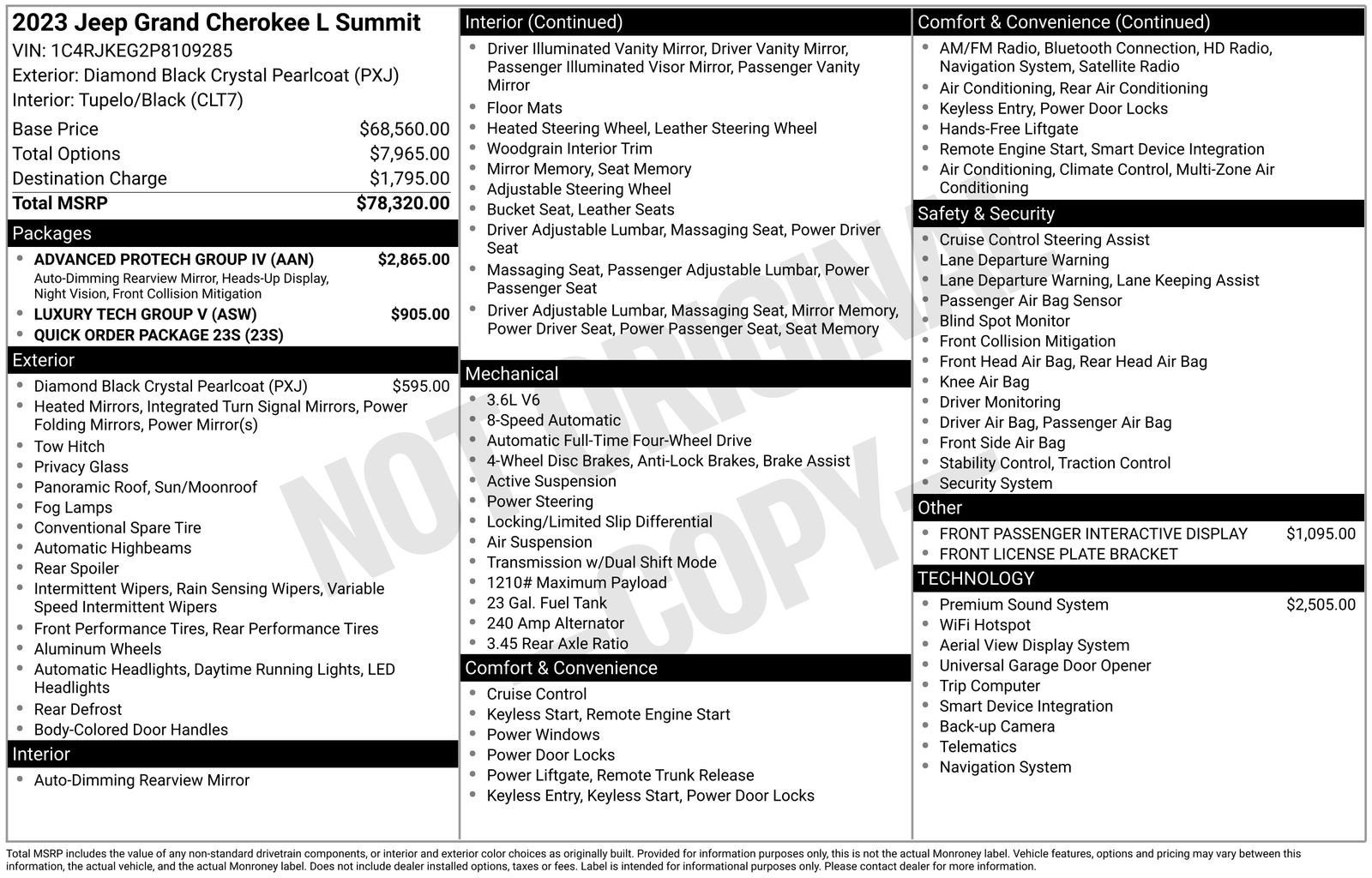 2023 Jeep Grand Cherokee L Summit Diamond Black Crystal Pearlcoat 4WD 3.6L V6 24V VVT 8-Speed Automatic