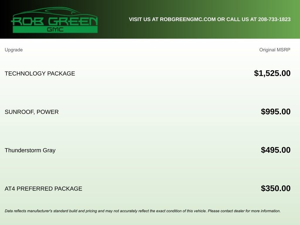 Come to www.RobGreenBuickGMC.com Call us at (208) 944-4073 For help with any of our departments.