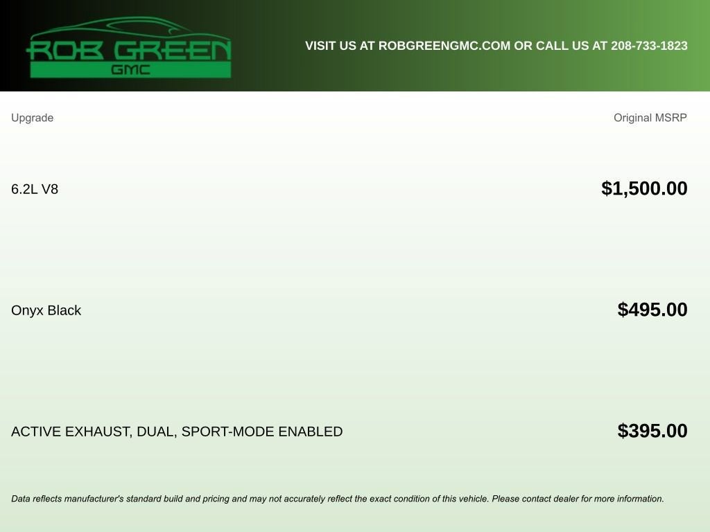 Experience the Pinnacle of Capability and Comfort in the 2024 GMC Sierra 1500 AT4XThis exceptional 2024 GMC Sierra 1500 AT4X is the epitome of rugged sophistication, blending unparalleled off-road prowess with a refined, luxurious interior. Boasting a powerful EcoTec3 6.2L V8 engine paired with a smooth-shifting 10-speed automatic transmission, this Sierra 1500 AT4X delivers an impressive 420 horsepower and 460 lb-ft of torque, ensuring you command the road with authority.• Dual, Sport-Mode Enabled Active Exhaust• Onyx Black Exterior• Black InteriorElevate your driving experience with the Sierra 1500 AT4X's impressive array of premium features:• Bose Premium Series Audio System with 12 Speakers• Multicolor 15 Diagonal Head-Up Display• Heated and Ventilated Front Seats• Heated Rear Outboard Seats• Wireless Charging• Wireless Apple CarPlay and Android Auto• HD Surround Vision Camera System• Trailer Camera Provisions• Integrated Trailer Brake Controller• And much moreThis Sierra 1500 AT4X is more than just a capable off-road machine; it's a true luxury vehicle that will elevate your driving experience, whether tackling the toughest terrain or cruising down the highway. With its exceptional performance, advanced technology, and premium comfort features, this truck is a must-see for any discerning buyer.Imagine the confidence you'll feel behind the wheel of this impressive 2024 GMC Sierra 1500 AT4X. Its rugged good looks, exceptional capability, and refined interior will make every drive a true pleasure. We invite you to experience this remarkable vehicle for yourself and discover the unparalleled joy of owning a Sierra 1500 AT4X.Schedule a test drive today and let us demonstrate how this exceptional truck can transform your driving experience. We're confident you'll be impressed by the Sierra 1500 AT4X's uncompromising blend of power, technology, and luxury.WHY BUY FROM ROB GREEN GMCEvery vehicle receives an intensive multi-point inspection in our world-class service centerAll work completed by factory-trained, certified techniciansOne full year of free maintenance included with every purchaseTrusted, locally owned dealership committed to exceptional customer care