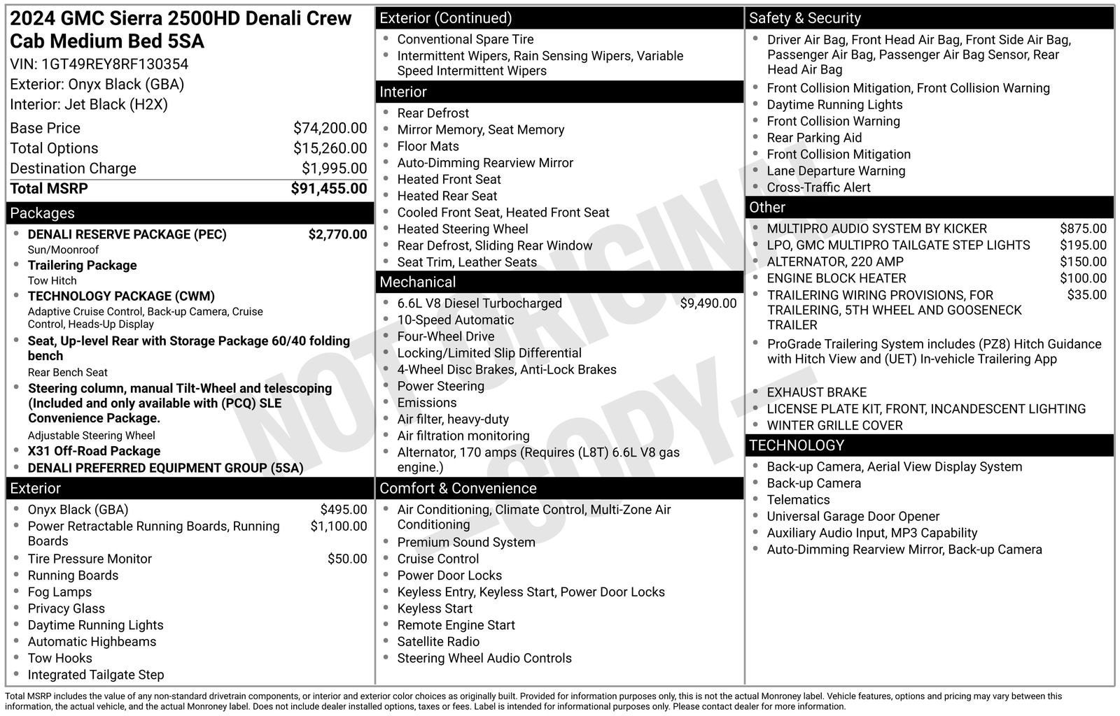 - Denali Preferred Equipment Group includes standard equipment
